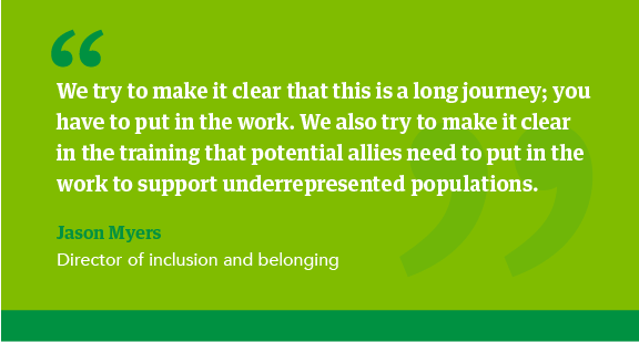 Myers shares, “We try to make it clear that this is a long journey; you have to put in the work. We also try to make it clear in the training that potential allies need to put in the work to support underrepresented populations.”