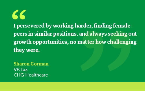 Many women in higher positions report a similar scenario: Early in their careers, they were often the only women in their positions. Sharon Gorman, VP of tax, says finding other female role models or mentors in her exact role was challenging, so she had to look elsewhere for inspiration.