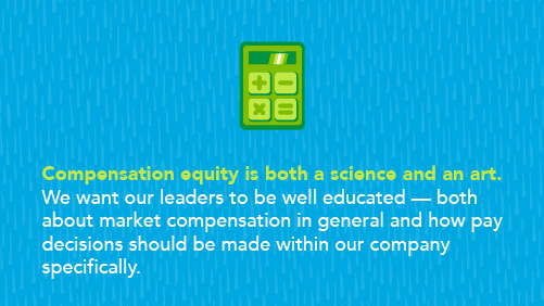 Compensation equity is both a science and an art. We want our leaders to be well educated, both about market compensation in general and how pay decisions should be made within our company specifically.