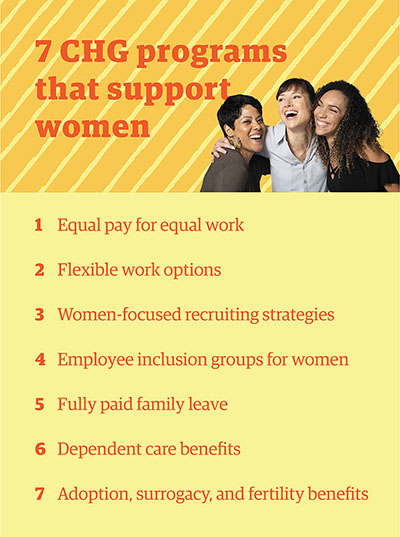 Connecting with coworkers and feeling a sense of belonging is important to building an inclusive workplace. CHG sponsors Employee Inclusion Groups (EIGs) to support and encourage individuals and provide opportunities to network with and learn from each other. One of the women’s groups, WIT (Women in Tech) and Wisdom, has nearly 90 members who meet quarterly to connect and discuss career development. Guest speakers have also been invited to share best practices for navigating the workforce and home life.