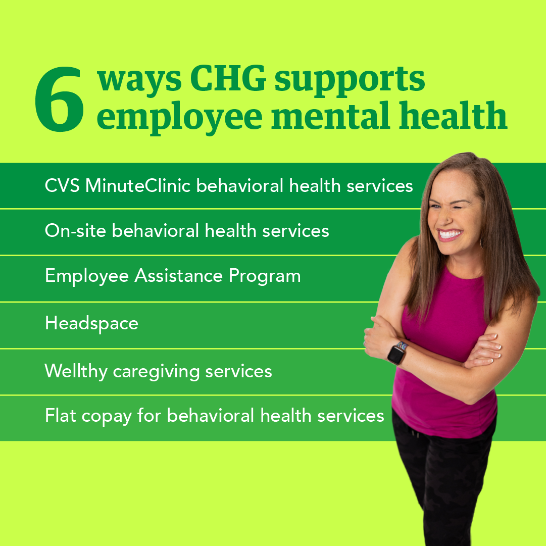 CHG is committed to ensuring our employees' overall health and well-being, a key component of which is mental health. We provide a wide array of behavioral health services to support our employees and their families.