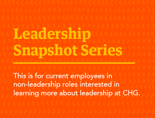 “My leadership journey was marked with a lot of great leaders who cared about me as a person and cared about my growth and development and gave me feedback along the way,” explains Freeman, who has been with CHG for 30 years. “The Leadership Snapshot Series really provides that opportunity to hear from some of our leaders on their own leadership journey, on their leadership experience, what they find valuable and what they find impactful about being a leader, and why they chose leadership,” he explains. “I think an important part of the leadership journey is understanding what it is and isn’t.”
