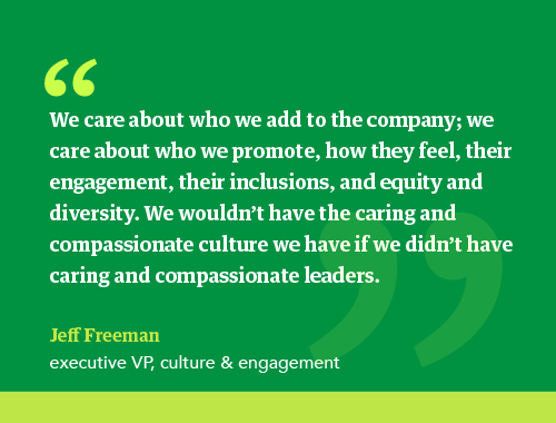 “We care about who we add to the company, we care about who we promote, how they feel, their engagement, their inclusions, and equity and diversity,” says Freeman, who started his career at CHG in sales, working with providers before moving into leadership roles. “We wouldn’t have the caring and compassionate culture we have if we didn’t have caring and compassionate leaders.”