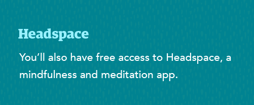 We also offer access to Headspace, a leading mindfulness and meditation app. This app is focused on creating strong mental health, and you and your dependents ages 6 and up will have unlimited access to its on-demand coaching, meditation guides, and more. It is also offered in Spanish.