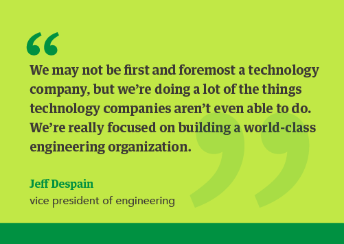 “We may not be first and foremost a technology company, but we’re doing a lot of the things technology companies aren’t even able to do,” Despain says. “We’re really focused on building a world-class engineering organization.”