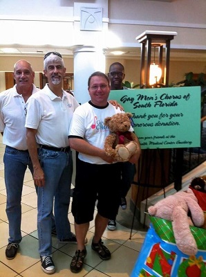 For more than five years, Chorus members like Bradley have paid special attention to the needs of pediatric patients at the Broward Health Center in Florida. Every year during the holidays, the group gathers hundreds of Teddy bears to distribute to children in the hospital.