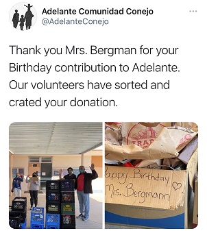 This year, she couldn’t have a party because of the pandemic. However, her husband, who is the principal of the local high school, invited his students to organize a drive-through food drop-off as a way to support Natalie and her cause. All of the food was donated to Adelante Comunidad, an advocacy group that helps Latino families in crisis.