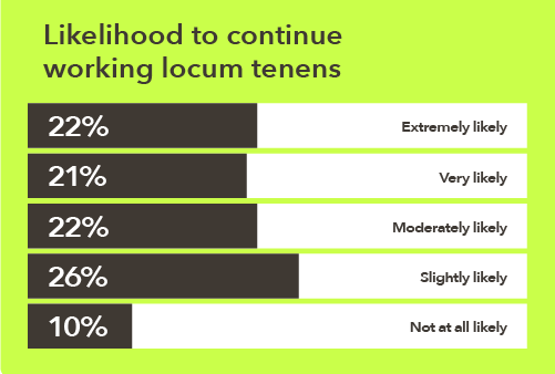 How do physicians feel about locum tenens? The overwhelming majority (81%) have a positive impression of it, and 90% of physicians who’ve worked locums are, to some degree, likely to continue locums work.